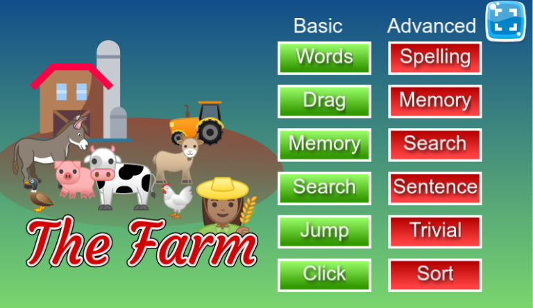 Actividades con dos niveles de dificultad para aprender vocabulario en inglés relacionado con la granja.