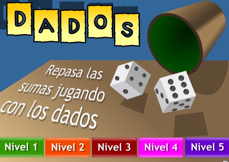 Repasa la suma jugando con los dados. Con 5 niveles de dificultad.