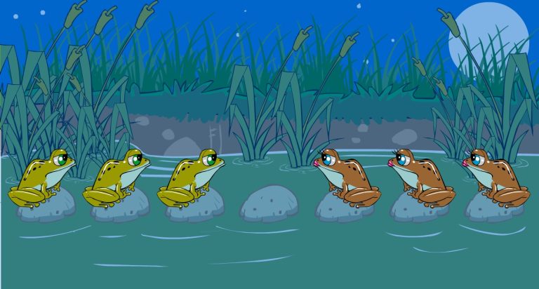 Tienes que conseguir colocar las ranas verdes en el lugar de las marrones, y viciversa. Las ranas sólo pueden pasar de una piedra a la siguiente si está libre, y también puden saltar sobre una rana de color contrario. Sin…